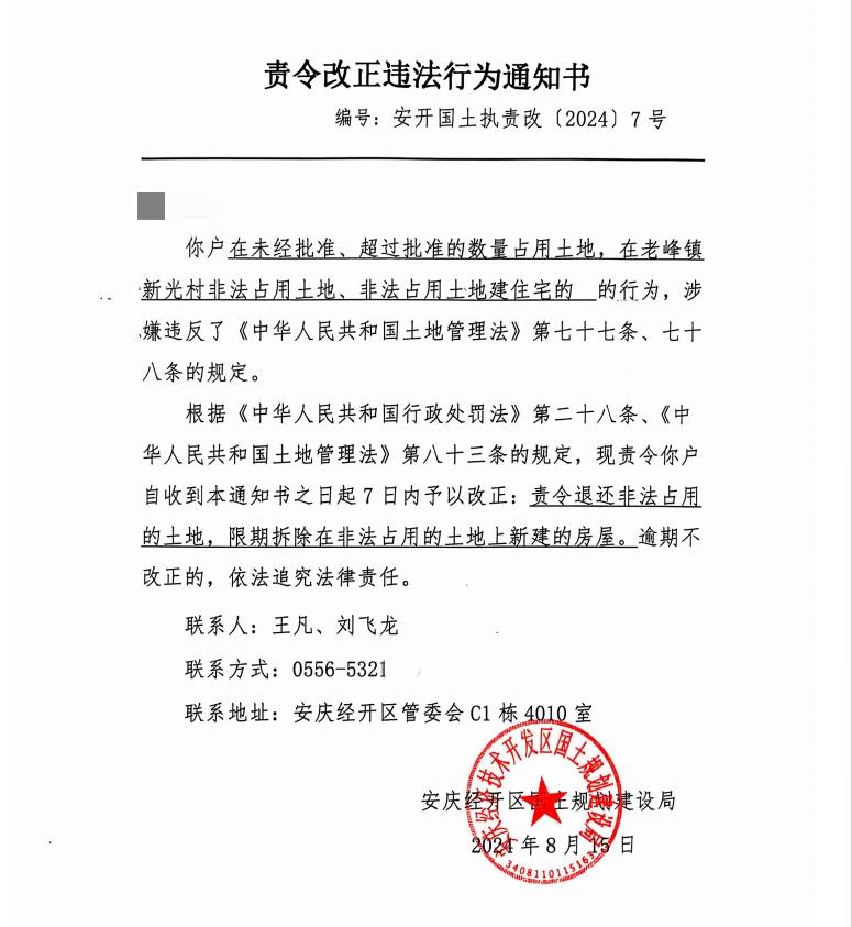 编者按:“中国式现代化,民生为大。党和政府的一切工作,都是为了老百姓过上更加幸福的生活。”然而,8月15日,发生在安庆经济技术开发区国土规划建设局的一宗对宅基地房屋实施行政行为的《责令改正违法行为通知书》,却“反其道而行之”,不是支持人民群众住上漂亮的房子,而是看到人民群众做了漂亮的房子却心里难过,千方百计想拆毁,属于越权违法行为和乱作为,当然是滥用职权。中央三令五申禁止行政机关乱作为,并且二十届三中全会精神其中一项就是着力解决干部乱作为问题。