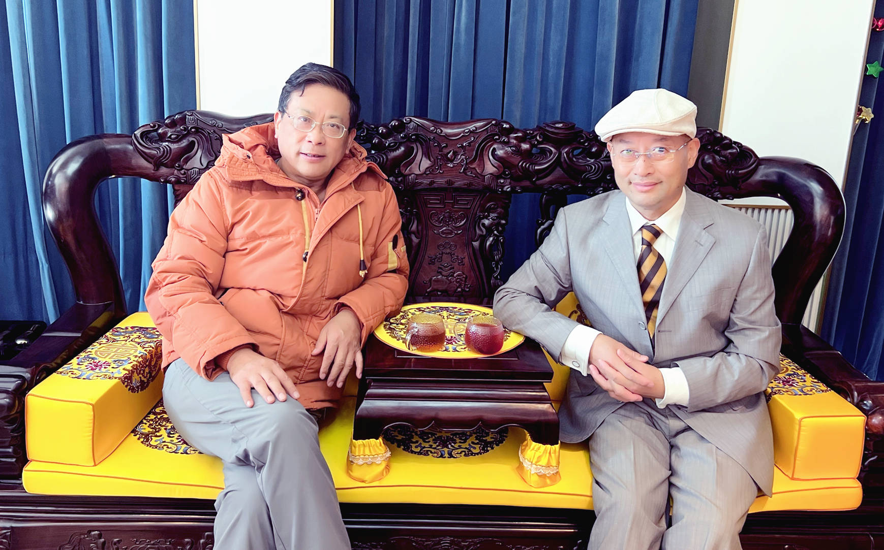 吴礼明博士(左)与于大江博士(右)在滨临黄浦江畔的上海繁花滨江酒店留影 龚昌铃 摄