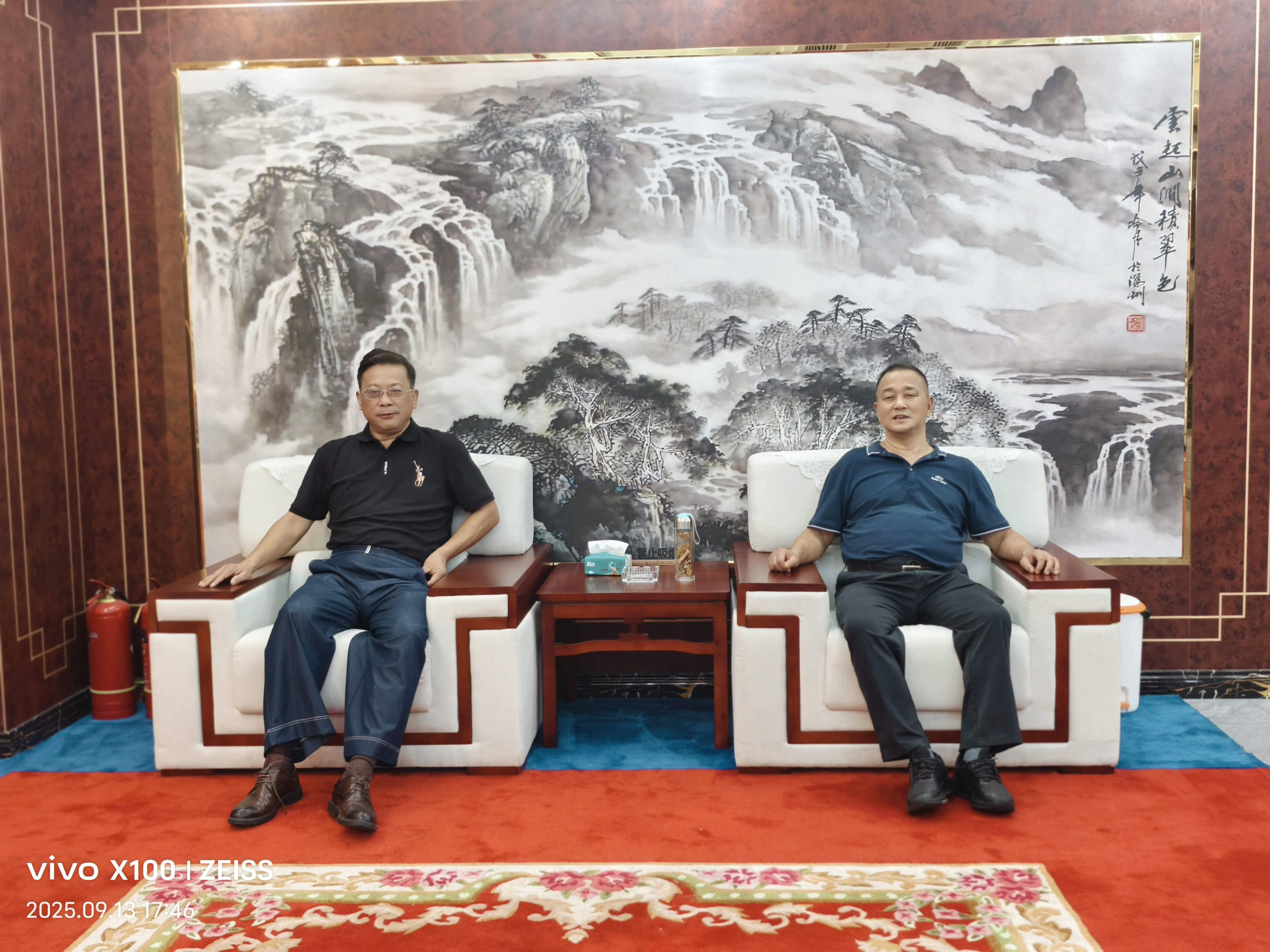 吴礼明(左)在中国企业家联盟网嘉兴工作部会见程阳春