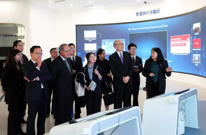 黄鲁胜一行还参观了最高人民法院智慧法院重点实验室。